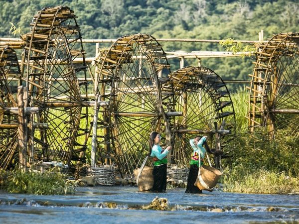The car take you to suspension bridge over Cham river, walking on small trail with beautiful rice field to bamboo water wheels. You will explore how water is moved from river to handmade bamboo aqueducts via simple constructions,a great invention of the Thai people to get water for rice fields without making use of human strength